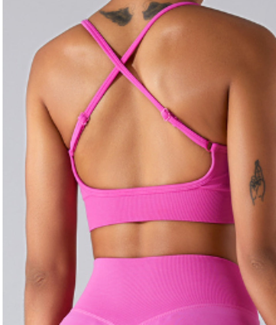This Seamless Adjustable Cross Over bra top 90% Nylon & 10% Spandex
